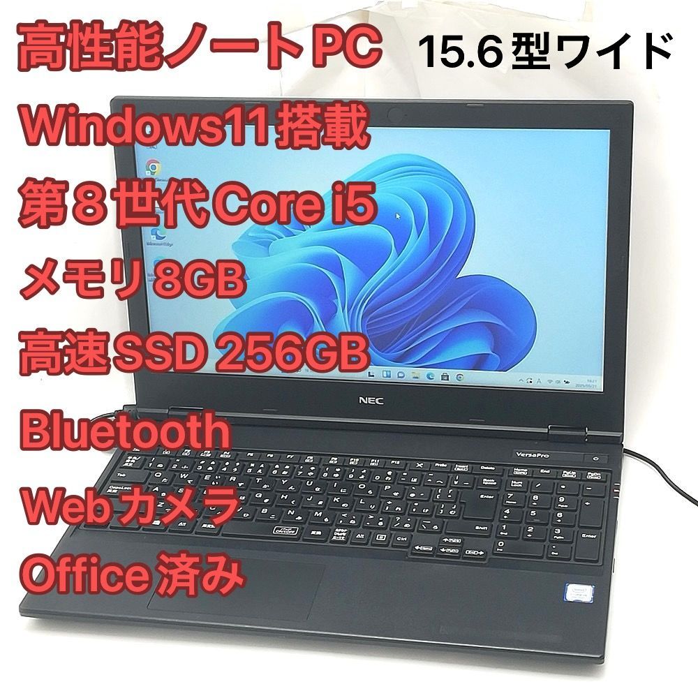- ノートPC > Windowsノート本体 > サクサク快適! メモリ8GB NECノートパソコン SSD 初期設定済み カメラ 激安 高速SSD 軽量 ノートパソコン フルHD 12.5型 NEC PC-VKT12HZG3